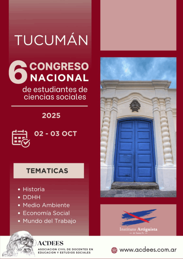 Desde el Instituto Artiguista de Santa Fe invitamos a docentes de escuelas medias y terciarias de Santa Fe y Entre Ríos a participar y promover la participación estudiantil en el 6° Congreso Nacional de Estudiantes de Ciencias Sociales, organizado por ACDEES (Asociación Civil de Docentes en Educación y Estudios Sociales). Fecha: 2 y 3 de […]